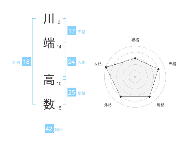 川端 高数さんの天格は17画の4点!