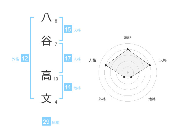 八谷 高文さんの総格は29画の4点!