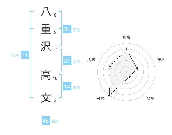 八重沢 高文さんの総格は48画の4点!
