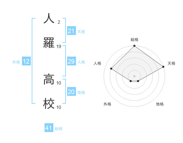 人羅 高校さんの天格は21画の5点!