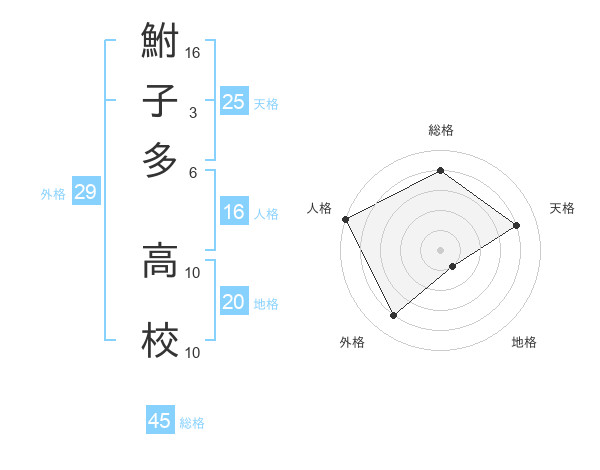 鮒子多 高校さんを姓名の画数から五運を鑑定