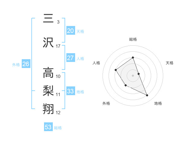 三沢 高梨翔さんを姓名の画数から五運を鑑定