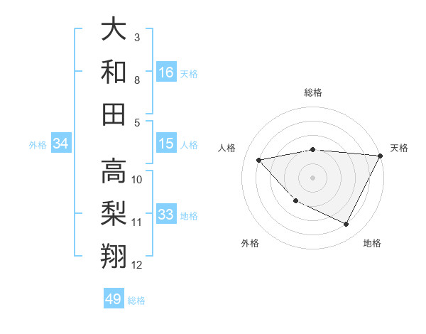 大和田 高梨翔さんの総格は49画の2点