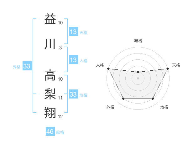 益川 高梨翔さんを姓名の画数から五運を鑑定