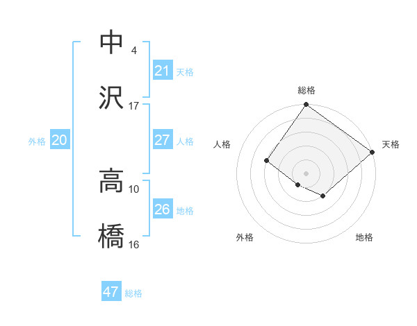 中沢 高橋さんの総格は47画の5点!