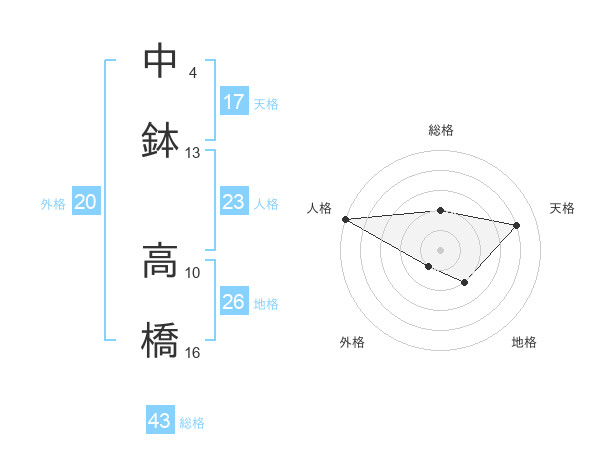 中鉢 高橋さんを姓名の画数から五運を鑑定