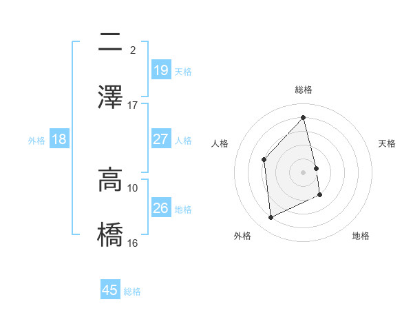 二澤 高橋さんの総格は45画の4点!