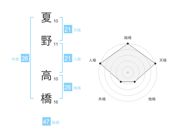 夏野 高橋さんを姓名の画数から五運を鑑定