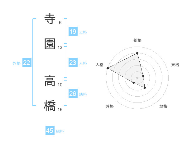 寺園 高橋さんの総格は45画の4点!