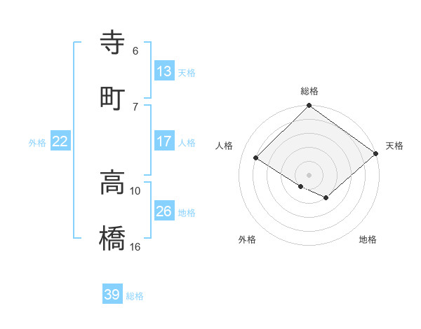 寺町 高橋さんの天格は13画の5点!