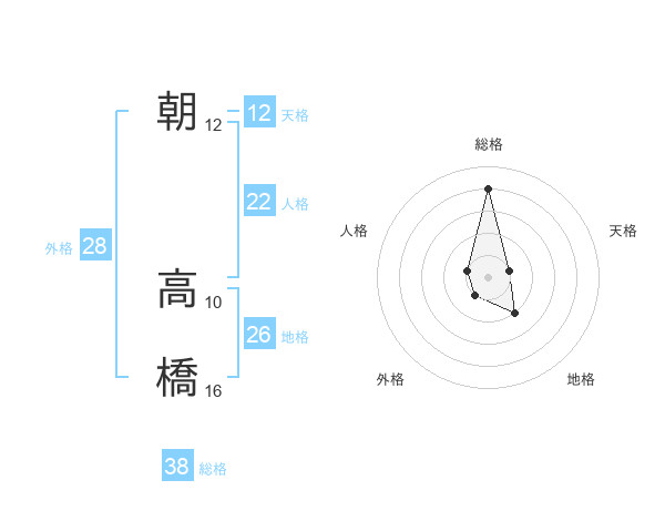 朝 高橋さんの総格は38画の4点!