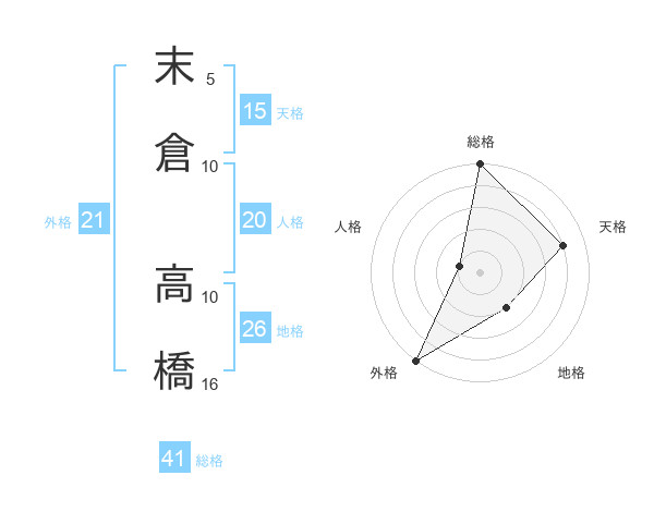 末倉 高橋さんの外格は21画の5点!
