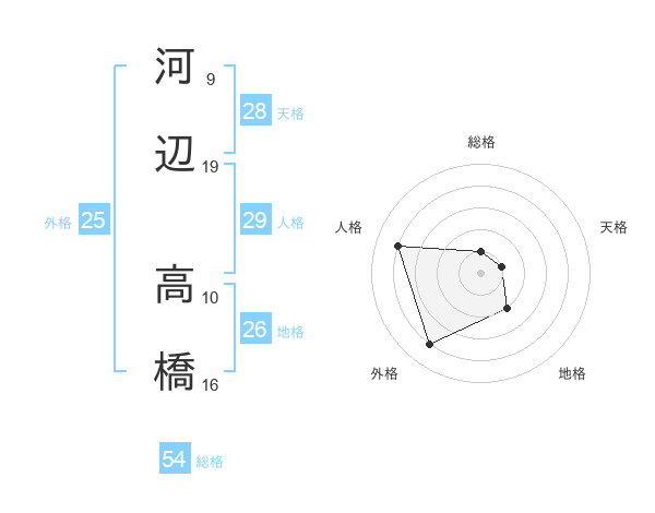 河辺 高橋さんを姓名の画数から五運を鑑定