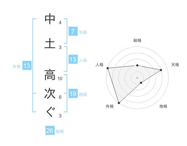 中土 高次ぐさんを姓名の画数から五運を鑑定
