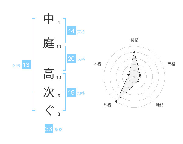 中庭 高次ぐさんを姓名の画数から五運を鑑定
