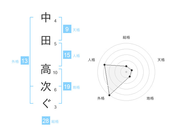 中田 高次ぐさんの外格は13画の5点!