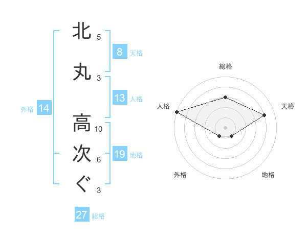 北丸 高次ぐさんを姓名の画数から五運を鑑定