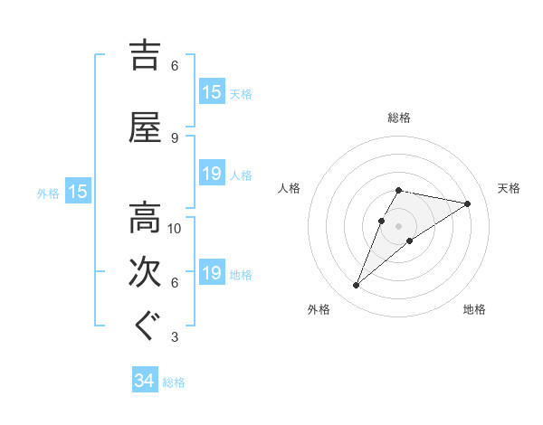 吉屋 高次ぐさんを姓名の画数から五運を鑑定