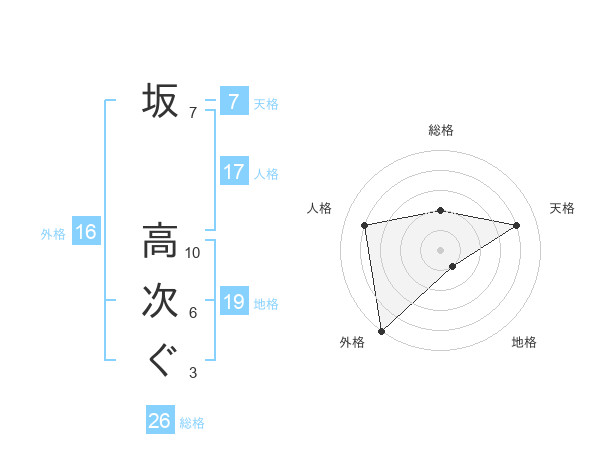 坂 高次ぐさんの外格は16画の5点!