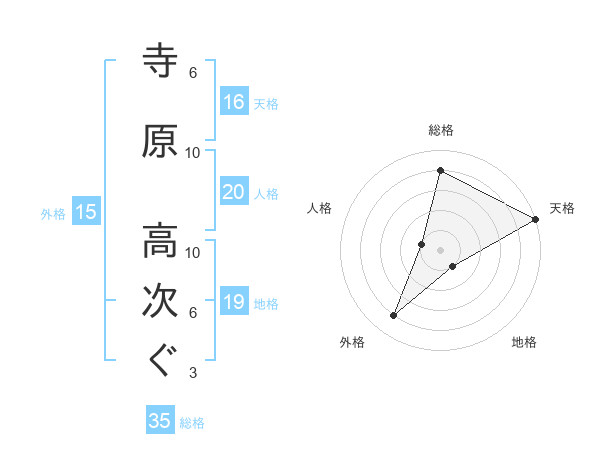 寺原 高次ぐさんの天格は16画の5点!