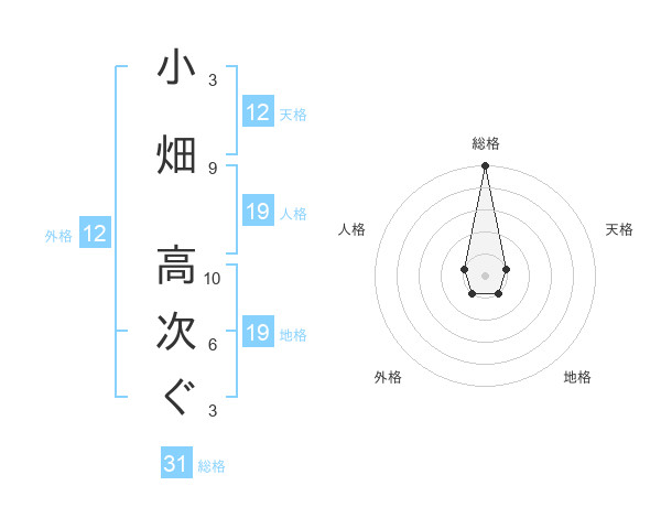 小畑 高次ぐさんを姓名の画数から五運を鑑定