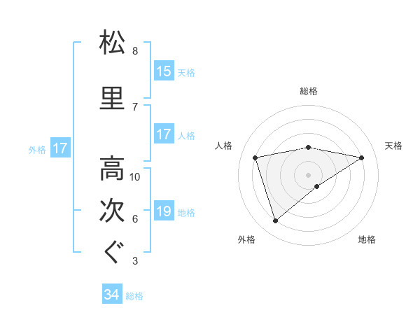 松里 高次ぐさんの天格は15画の4点!