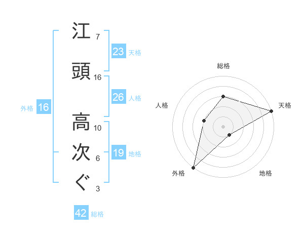 江頭 高次ぐさんの天格は23画の5点!
