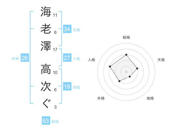 海老澤 高次ぐさんを姓名の画数から五運を鑑定