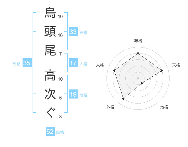 烏頭尾 高次ぐさんの総格は52画の4点!
