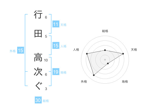 行田 高次ぐさんを姓名の画数から五運を鑑定