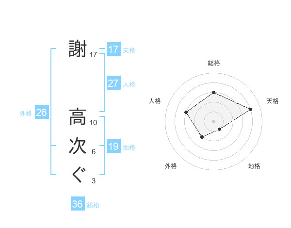 謝 高次ぐさんの天格は17画の4点!