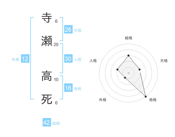 寺瀬 高死さんを姓名の画数から五運を鑑定