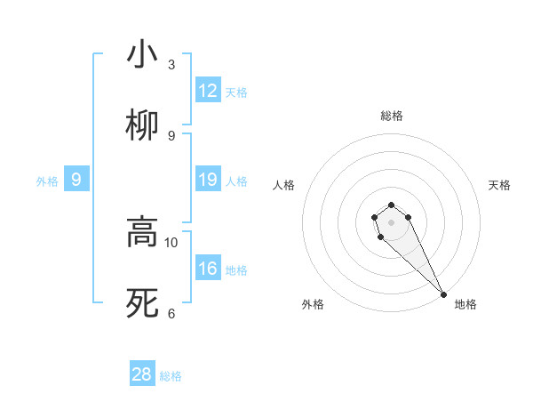 小柳 高死さんの総格は28画の1点!