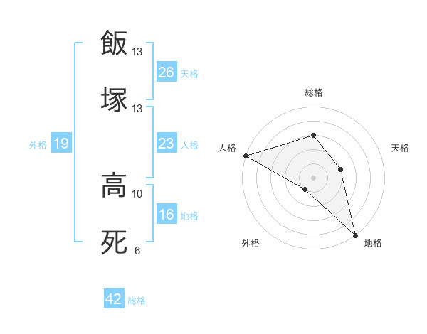 飯塚 高死さんを姓名の画数から五運を鑑定