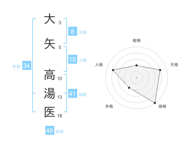 大矢 高湯医さんを姓名の画数から五運を鑑定