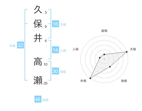 久保井 高瀬さんを姓名の画数から五運を鑑定