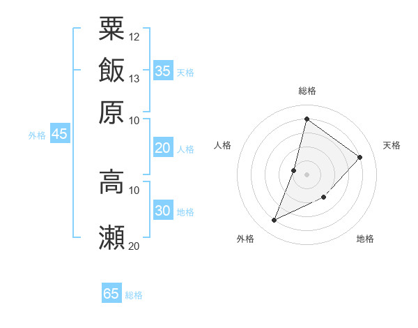 粟飯原 高瀬さんの総格は65画の4点!