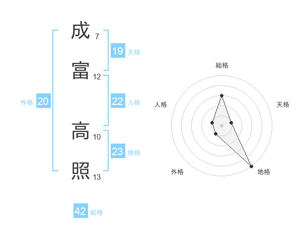 成富 高照さんの地格は23画の5点!