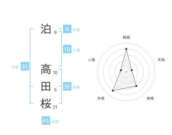 泊 高田桜さんを姓名の画数から五運を鑑定