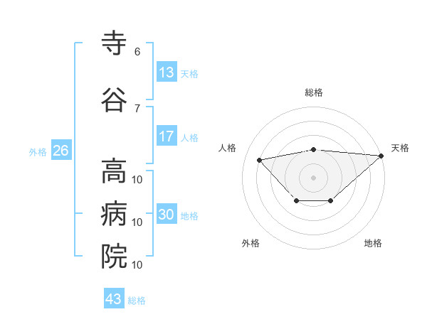 寺谷 高病院さんを姓名の画数から五運を鑑定