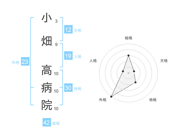 小畑 高病院さんを姓名の画数から五運を鑑定