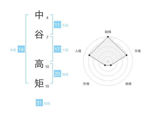中谷 高矩さんの総格は31画の5点!