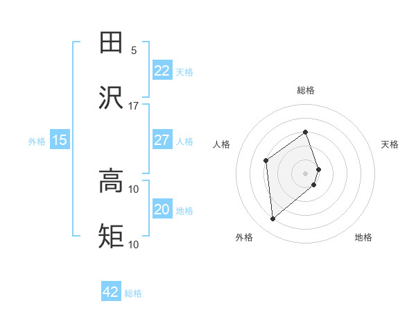 田沢 高矩さんを姓名の画数から五運を鑑定