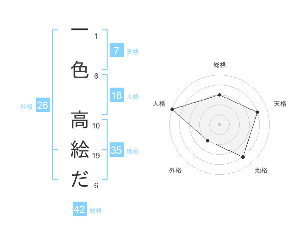 一色 高絵ださんを姓名の画数から五運を鑑定