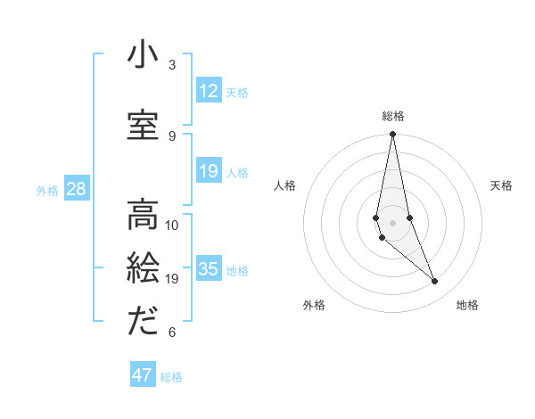 小室 高絵ださんを姓名の画数から五運を鑑定