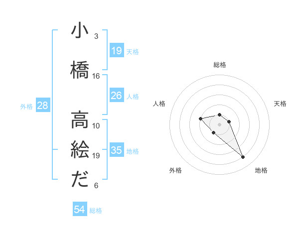 小橋 高絵ださんを姓名の画数から五運を鑑定