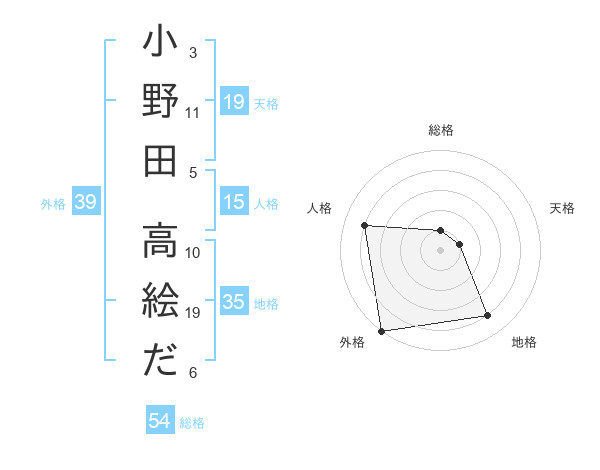 小野田 高絵ださんを姓名の画数から五運を鑑定