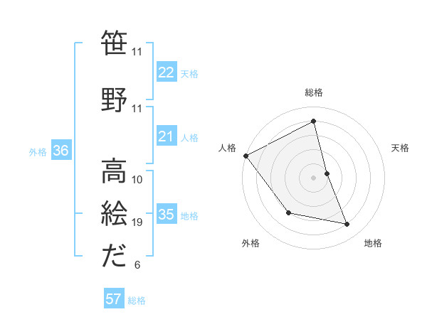 笹野 高絵ださんの総格は57画の4点!