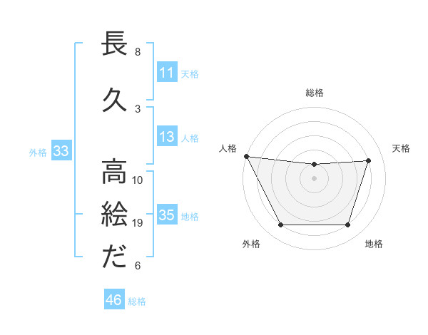 長久 高絵ださんを姓名の画数から五運を鑑定