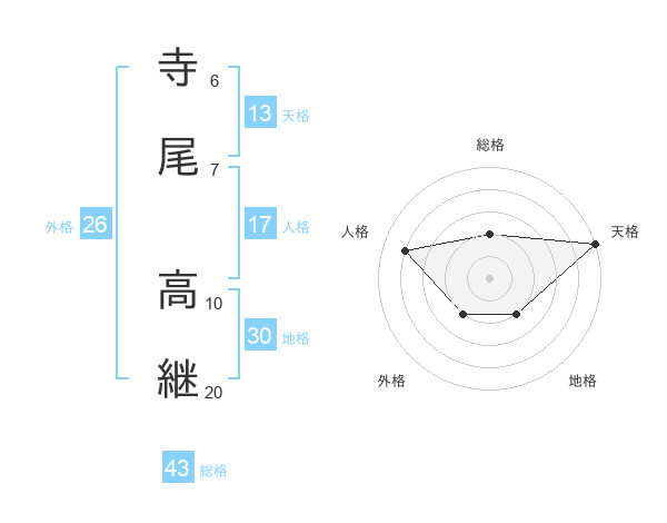 寺尾 高継さんの総格は43画の2点!